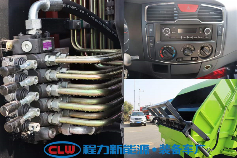 壓縮垃圾車底盤配置:選用東風多利卡國六底盤,3800mm軸距,可選玉柴165馬力云內150馬力發動機,,帶原廠空調,中控鎖電動玻璃,ABS,斷氣剎