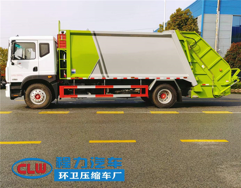 ?風東?D9單橋18方壓縮垃圾車配置:康明斯230馬力發動機,法士特?檔八?變速箱,10噸級后橋,10.00的鋼絲胎。東風18方壓縮垃圾車箱?容體?積18立方,垃圾車鋼板邊5底5?板錳?制作,機?人器?自動化焊接工藝,中梅?路多?閥,長源雙聯泵,背壓閥,西門子PLC電控系統?遙帶?控裝置,壓縮垃圾車尾部常規翻轉機構。
